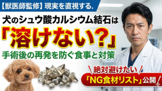 Home 2025.12.31 Contents 犬の腎臓病・完全ガイド 初期症状から最新の治療・食事まで 詳しく見る 犬の膵炎・食事療法 再発を防ぐ脂質制限とケアの正解 詳しく見る 犬の尿石症・血尿 ストルバイトとシュウ酸の判別・食事療法 詳しく見る 犬の歯周病・完全ガイド 口臭・腫れの原因と手術回避のケア 詳しく見る もっと深い知識を 獣医療の専門的な情報をnoteで配信 noteを見る New すべて見る → 【獣医師レビュー】このこのふりかけは効果なし?口コミの真実と「歯石」への期待値を本音で解説 2026.01.03 【獣医師監修】ダイエットキャットフードおすすめ8選|太りやすい猫のための低カロリー完全ガイド 2026.01.03 【獣医師監修】犬の歯周病を完全ガイド|口臭・腫れの原因から治療費、サプリメントについて解説 2026.01.022026.01.03 【獣医師監修】犬のシュウ酸カルシウム結石は溶けない?手術後の再発を防ぐ食事とNG食材リスト 2026.01.02 【獣医師監修】犬のストルバイト結石は食事で溶かせる!療法食の期間と「再発させない」コツを解説 2026.01.02 Subscribe 📮 ペットの健康情報を 毎週無料でお届け 獣医師監修の最新医療情報/論文/ケアアドバイス/お得な情報を1万人以上の飼い主様が購読中 登録する → Profile ✚ 🐾 監修:Dr.サク 獣医師 日本獣医腎泌尿器学会所属 臨床経験10年以上 1.5次診療での勤務を経て、都内の動物病院で院長を務める。特に腎臓病・泌尿器/消化器疾患の食事療法に精通し、多くの飼い主様から信頼を得ている。